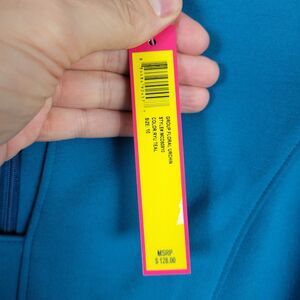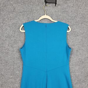 NWT CATHERINE MALANDRINO MCD60190 Turquoise Blue Split Neck Sheath Dress Career Office SIZE 10