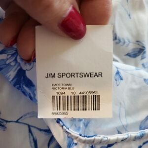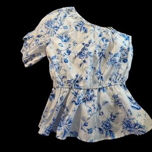 NWT CATO XS Cape TOWN Victoria Blue Floral One-Shoulder Top
