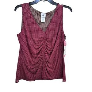NWT CAbi #4549 Women's Red Geometric Print Sassy Reversible Tank Top Size XL