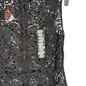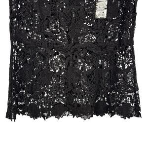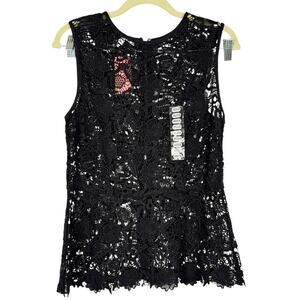 NWT CAbi Black Sleeveless Embroidered Lace Peplum Sheer Zip Top Medium Elegant