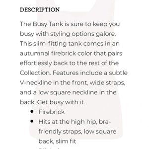 New with Tags (Also available in other colors) Send DM to Steamboat Closet on FB with Busy Tank Color and size.