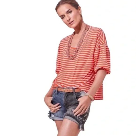 NWT CAbi Park Colorblock Denim Shorts Distressed Frayed Hems Stretch