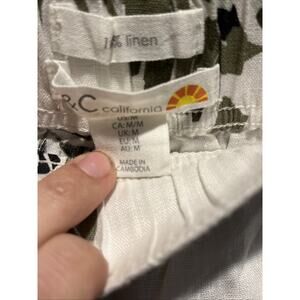 NWT C&C California Leaf Print Tropical Pants Sz M 100% Linen Pull-On