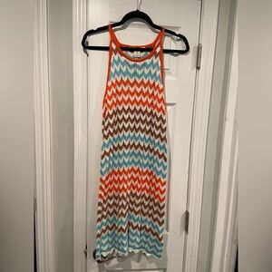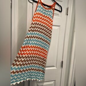Thin strap pullover cotton crochet knit blue orange white brown chevron stripe mini dress swim coverup