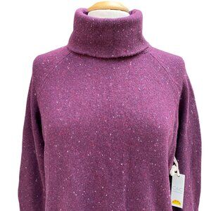 NWT C&C California Wool Turtleneck Sweater Sz L Burgundy Speckled Ski Cabincore