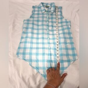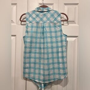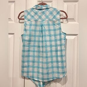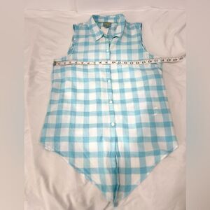 NWT C&C California sleeveless plaid front tied Maui blue shirt size medium