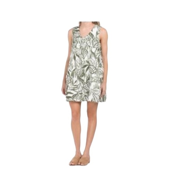100% linen leaf design dress pockets lined pullover style