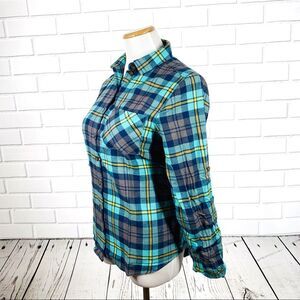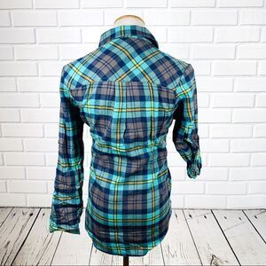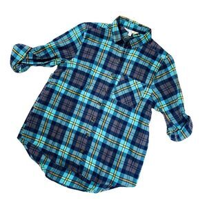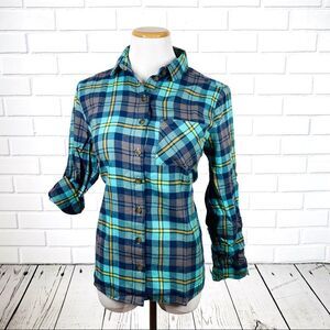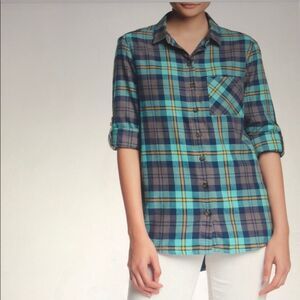 Plaid flannel button-down new with tags super soft lightweight hundred percent cotton size small. Great paired with dark denim or a white pair jeans for spring and summer!!