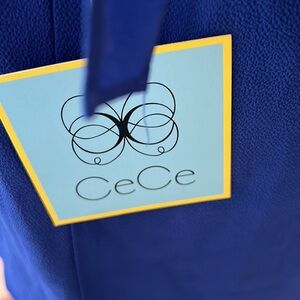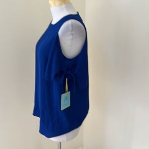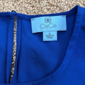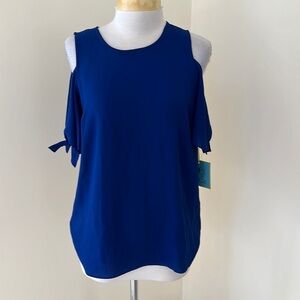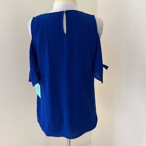New! CeCe size small blue cold shoulder blouse. Back one button keyhole closure.