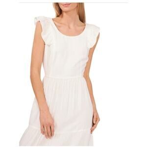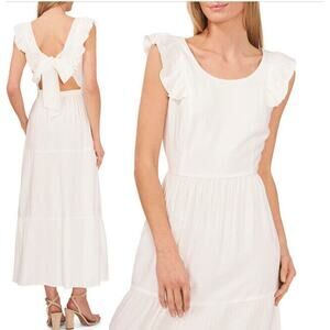 NWT CECE Size XL White Tiered Maxi Dress Coastal Cut Out Back Portrait Beach