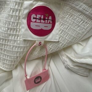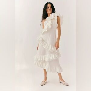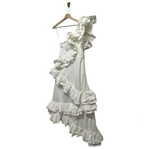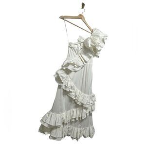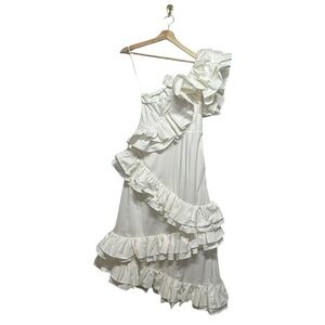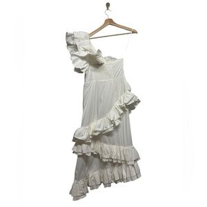 NWT CELIA B Ezili One-Shoulder Tiered Ruffle Dress White S