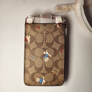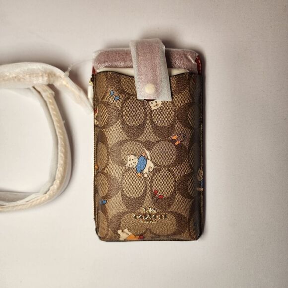 NWT CF313 Coach Phone Crossbody In Signature Canvas With Cat Mittens Print