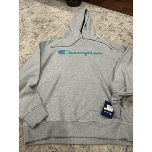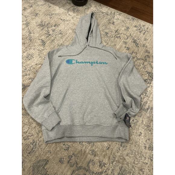 NWT CHAMPION Sz Large Grey Cotton Blend Jersey Men's Sweatshirt Hoodie Pullover