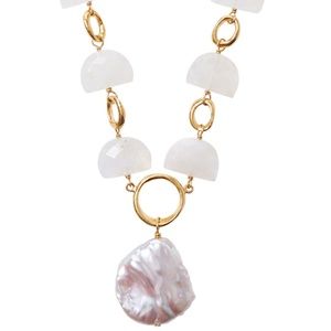 NWT CHAN LUU MOONSTONE PEARL LUNA PENDANT GEMSTONE GOLD CHAIN NECKLACE $345