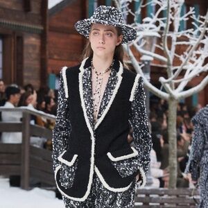 NWT CHANEL METALLIC TWEED KNIT BLACK WHITE BLAZER BUTTON CHAIN JACKET $7200