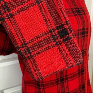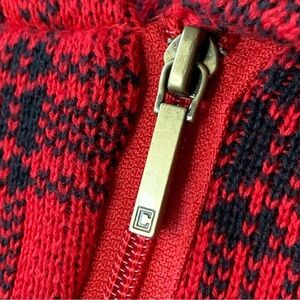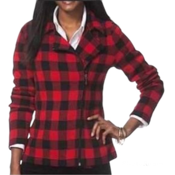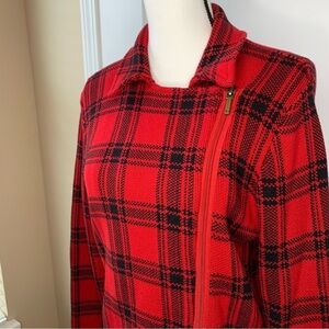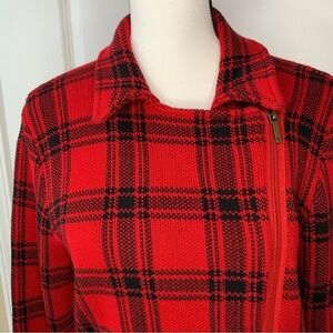NWT Chaps Red Black Plaid Womens Large Cotton Knit Moto Sweater Jacket with Side Zipper