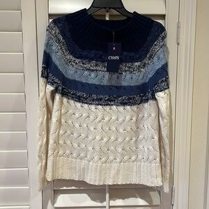 NWT CHAPS Chunky Cable Knit Sweater BlueCream Multi Color Size S