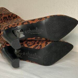 NWT CHARLES BY CHARLES DAVID Dalton Camel Leopard Print Stretch Boots Womens 6 M