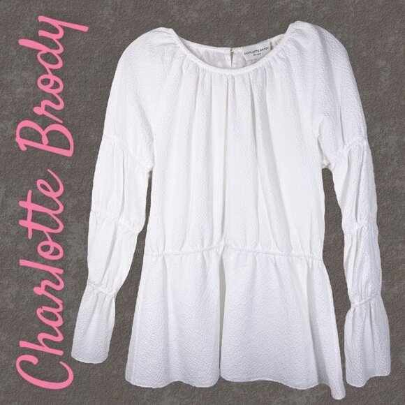 NWT CHARLOTTE BRODY Versailles Seersucker Blouse In White, Size Medium
