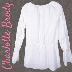 NWT CHARLOTTE BRODY Versailles Seersucker Tunic Blouse In White, Size Medium.
