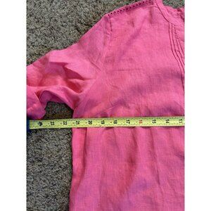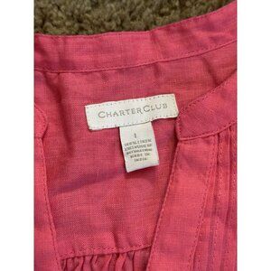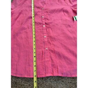 NWT CHARTER CLUB Pink 100% Linen button Front Blouse Top Roll Tab Sleeve LARGE