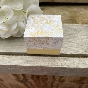 New with tags, gorgeous ring by Charter Club featuring 3 purple stones surrounded by small accent clear crystals. Size 6. Comes as pictured with gift box.