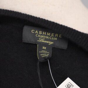 NWT CHARTER CLUB V-Neck 100% Cashmere Sweater in Black Size 3X