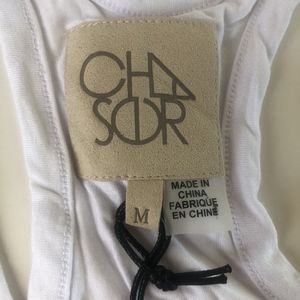 This NWT CHASER tank top in size Medium is perfect for any casual occasion. The white color and relaxed fit make it a great addition to any wardrobe. The V-neck and racerback straps add a touch of style to the basic design. The waist tie closure and sleeveless aspect make it suitable for warmer weather. It is also machine washable for easy care. Add this comfy tank top to your collection today!