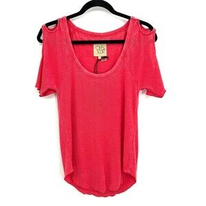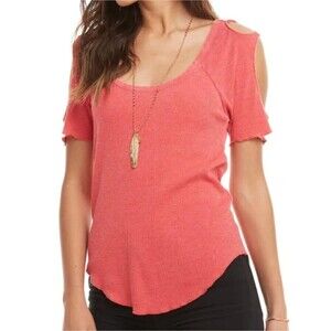 NWT CHASER Vintage Pink Ribbed Scoop Neck Cold Shoulder Short Sleeve Top Medium