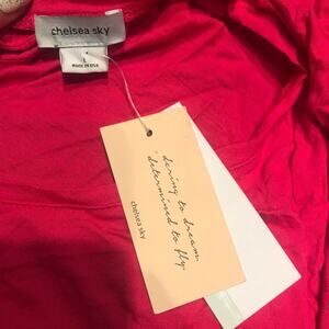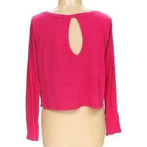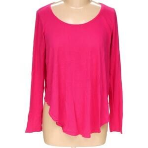 NWT CHELSEA SKY Candy Pink rounded hem long sleeve tee with keyhole back sz lg