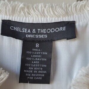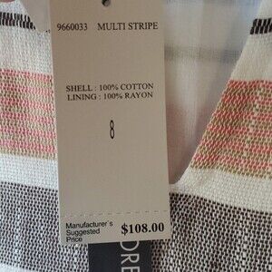 CHELSEA THEODORE SIZE 8 SLEEVELESS STRIPED COTTON SHIFT DRESS NWT FRINGE