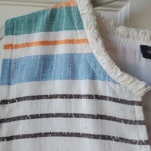 NWT CHELSEA & THEODORE SLEEVELESS STRIPED COTTON SHIFT DRESS FRINGE BOHO SIZE 8