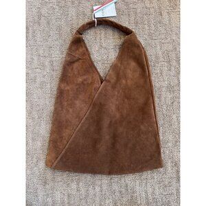 NWT CHEVAL Firenze Suede Genuine Leather Hobo Bag Pouch Camel Tan Italy