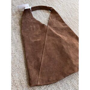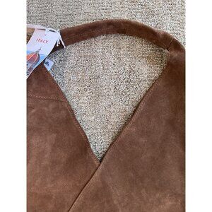 NWT CHEVAL Firenze Suede Genuine Leather Hobo Bag Pouch Cognac Tan Italy
