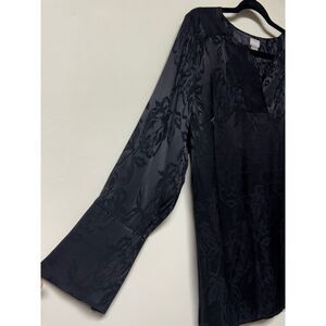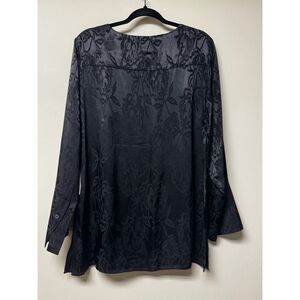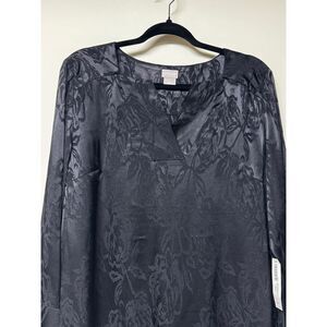NWT - CHICO'S Black Jacquard Satin Long Sleeve Popover Blouse, Sz 2 (12/14)