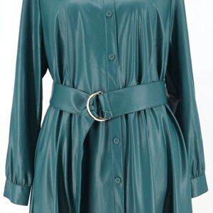 NWT CHICO'S Faux Leather Shirt Midi Dress in Deep Woods Green Size 2.5 (US 14)