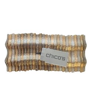 NWT CHICO'S MIXED METALS GOLD SILVER TONE STRETCH CUFF BRACELET