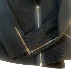 Beautiful Moto style sweater with goldtone zippers at pockets, sleeves and front.