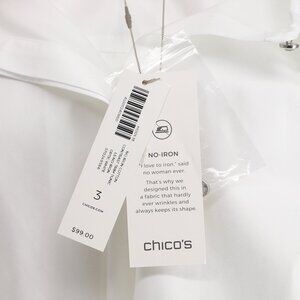 NWT CHICO'S No Iron Cotton Contrast Trim Tunic Shirt Optic White Size 3 (XL/16)