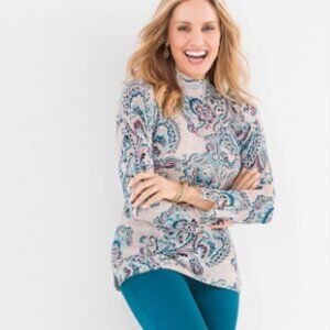 NWT CHICO’S Paisley Lace-Print Mock-Neck Pullover Size M (Chico’s Size 1)