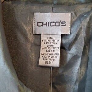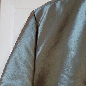 Beautiful iridescent jacket with collar and zip up front. Lovely for cocktails or an evening out. A pretty greenish blue. Chico's size 1 is a size 8 or a small.