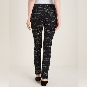 CHICO’S Script-Print Pull-On Pants Jeggings in Black. Size 18, new with secondary tag attached at the waist. Retired style.