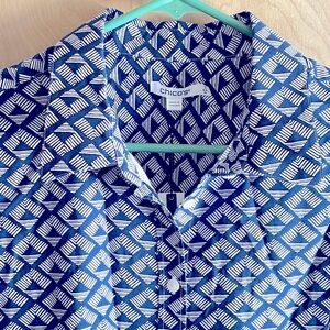 NWT CHICO’S Shirt No Iron Cotton Blue White Diamond Print Sz:16 (Chico’s Sz: 3)