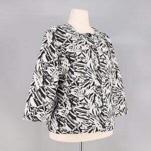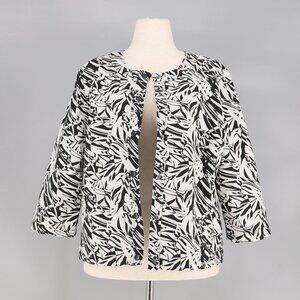 NWT CHICO'S Tropical Abstract Leaf Textured Jacket Black White Size 2 (L/12)