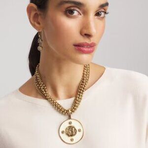 Instantly elevate your appearance with this White Enamel Pendant Necklace. Showcasing a blend of rich metals and an extender chain.