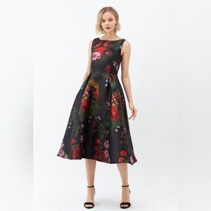 NWT CHICWISH GORGEOUS ROSE JACQUARD SLEEVELESS MIDI DRESS