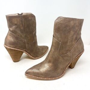 NWT CHINESE LAUNDRY Ramble Champagne Metallic Studded Western Bootie Block heel