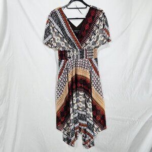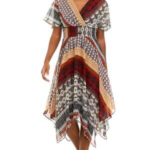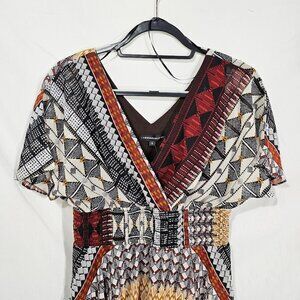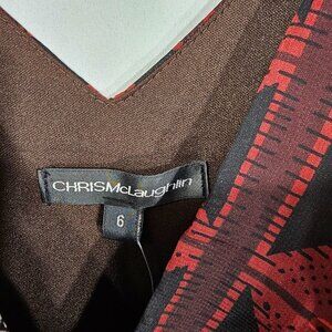 NWT CHRIS McLAUGHLIN Abstract Art Dress size 6 BROWN RED BLACK Boho Maximalist