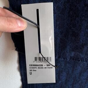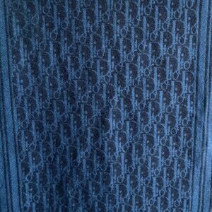Details: This super soft Dior scarf is made from 100% Cashmere and has an 'almost hidden' repeated "Dior" knit into the blue and navy. Great layering piece for fall and winter, for Dior or designer aficionados, or anyone who wants a touch of sophistication, elegance, or luxury in their wardrobe.