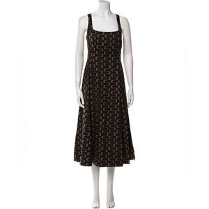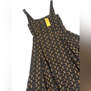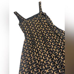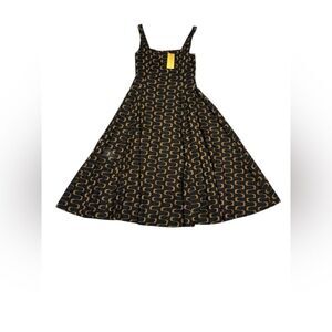 NWT CHRISTIAN LACROIX black brown Sleeveless A-Line midi linen blend dress sz 8